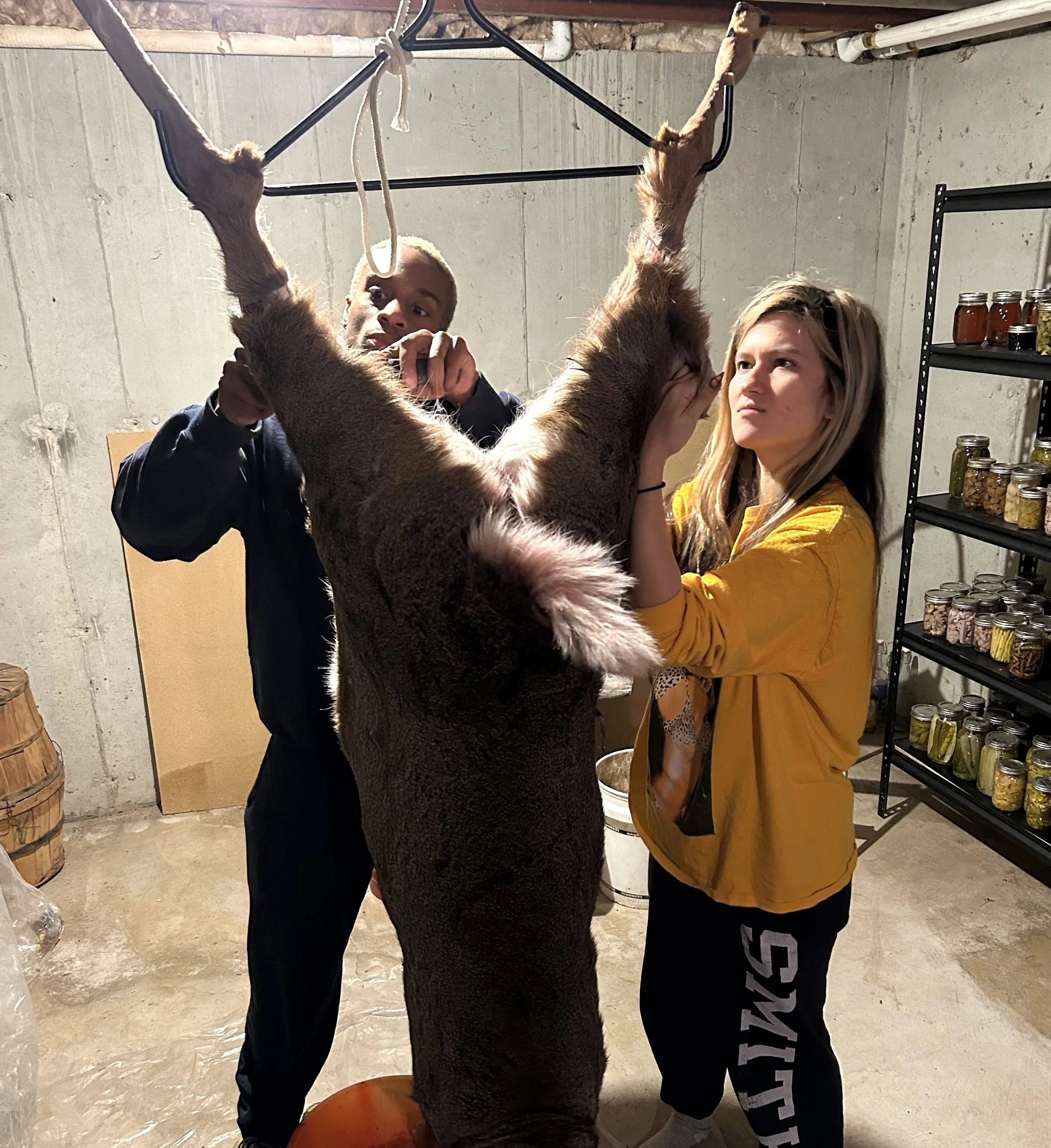 Now, Mike is a city kid from Long Island, and Alonda grew up in the city of Vientiane, Laos and is pesca-vegan – that is, she eats fish and seafood (preferably wild) but not dairy or other animal products. To my surprise and my bemused, grateful delight they both absolutely got into helping me butcher the deer. I felt like Tom Sawyer at the whitewashed fence as they dove into what is usually a solitary chore for me.