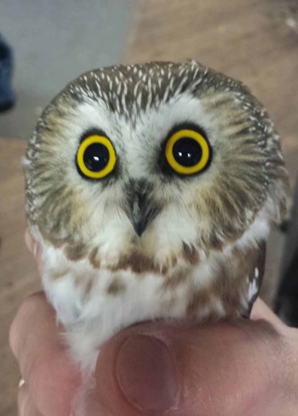 PS: At the suggestion of a reader, these will give you a better idea of how small a Saw-whet is (from the banding station):